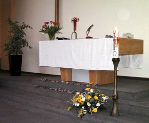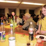 Vor und nach dem Gottesdienst wurde ausgiebig gefeiert. Mit Kaffee, Kuchen und einem einladenden Buffet kam man schnell miteinander ins Gespräch über Gott, die Welt … und … den ‚Stein des Anstoßes’.