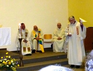 Es war ein bewegendes und bewegtes Fest, bei dem man die Trauer- und Freudentränen nicht voneinander unterscheiden konnte. Über 300 Menschen kamen, um ‚unseren’ Bert zu verabschieden: Familie, Freunde, Angehörige von Menschen, die er begleitet hat, Ärzte und Klinikpersonal der Kliniken, in denen er seelsorgerisch tätig war, Vertreter von Presse, Funk und Fernsehen, natürlich die Paulusgemeinde sowie seine Mitbrüder. Dabei wurde Bert die ganze Zeit sorgsam ‘überwacht’ von seinem ‘persönlichem Gesundheitsapostel aus Holland’ – wie er ihn immer wieder liebevoll nennt - Dr. Till Gerling.